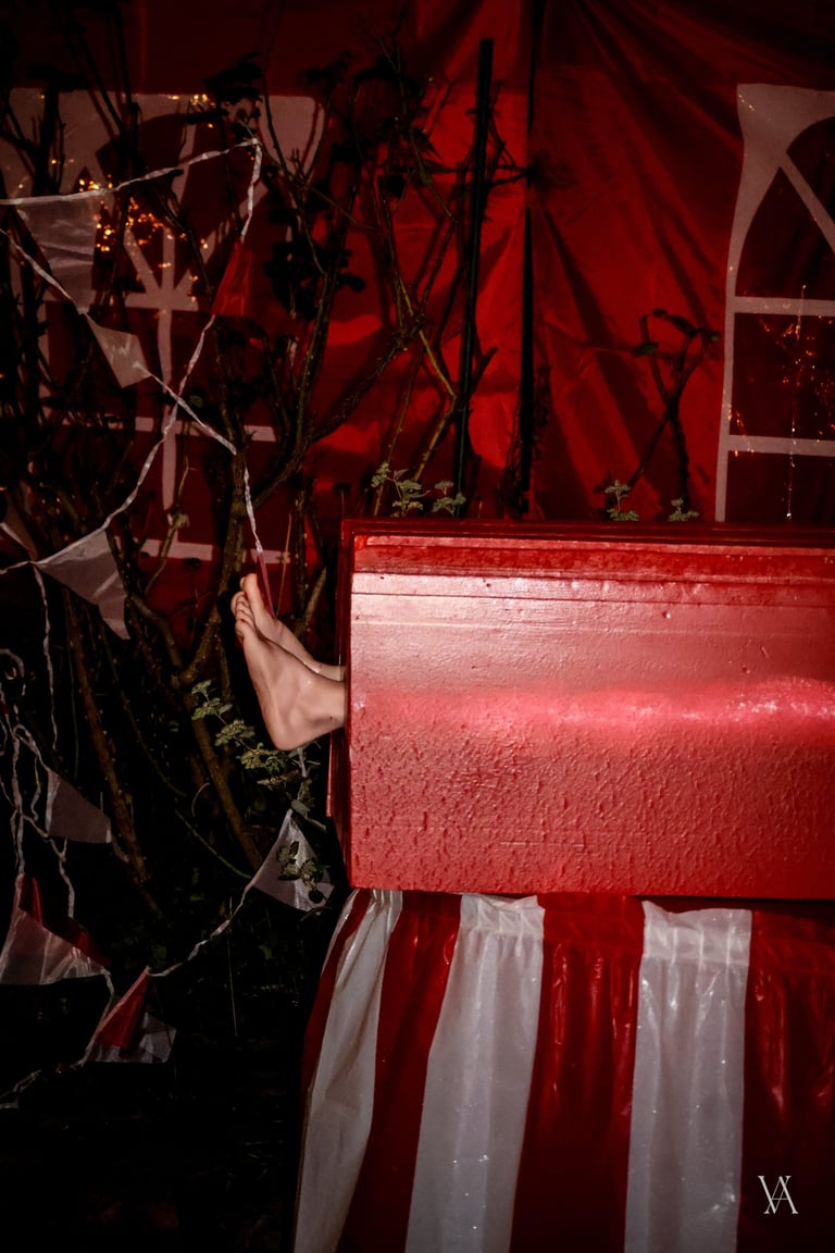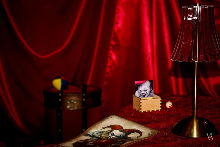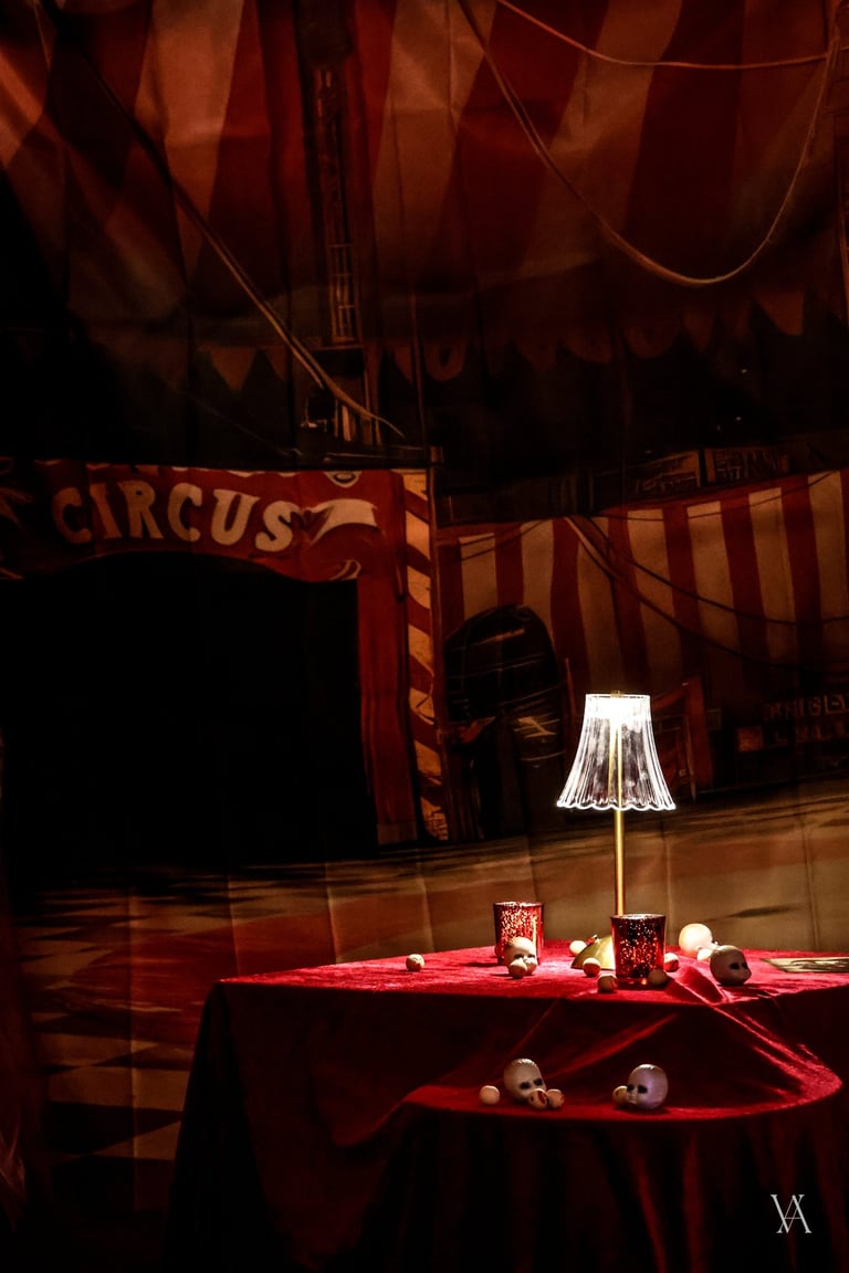 Lanternes vacillantes, tentures sombres, silhouettes inquiétantes et jeux d’illusions composent un décor où chaque détail semble appartenir à un spectacle qui ne s’est peut-être jamais réellement terminé.