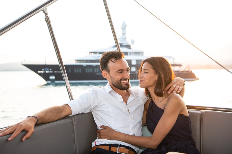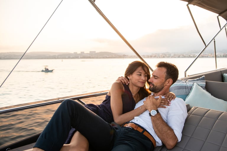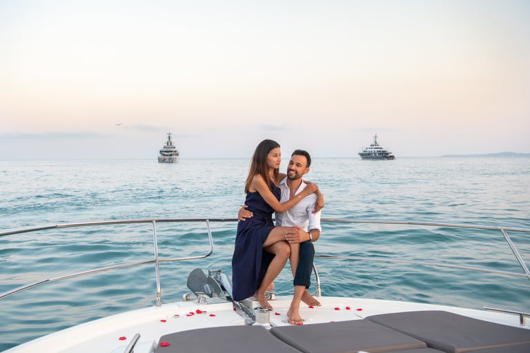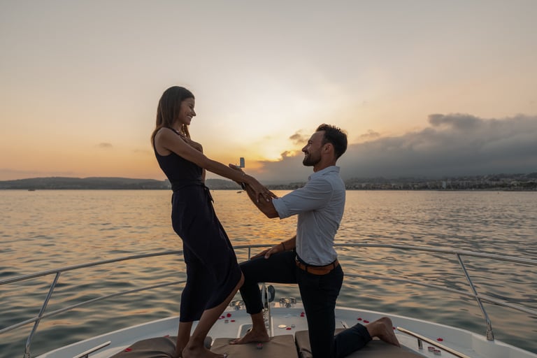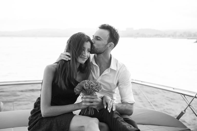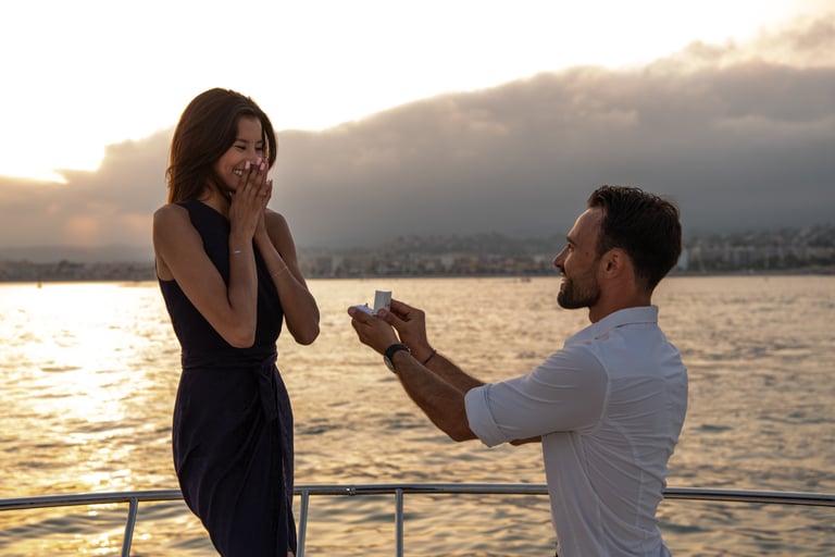 Au large de Cannes, dans l’intimité d’un yacht privé, ils ont vécu un moment rare et précieux. Alors que le soleil déclinait à l’horizon, baignant la mer d’une lumière dorée, la demande a été faite, sobre et sincère, dans un cadre à la hauteur de l’instant.