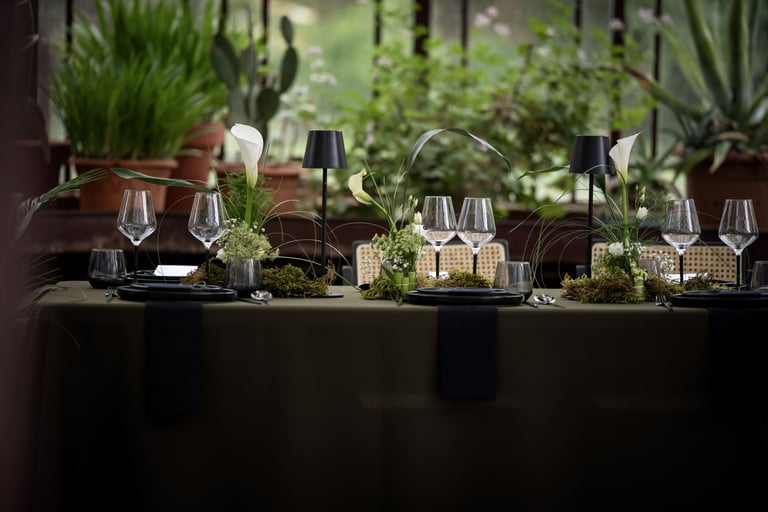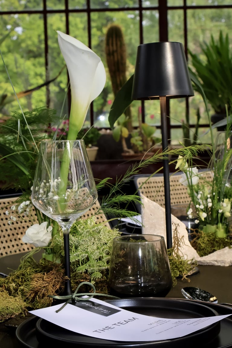 Sous la verrière du Château de Verderonne, j’ai imaginé une table comme un écrin vivant, une respiration entre nature et raffinement.